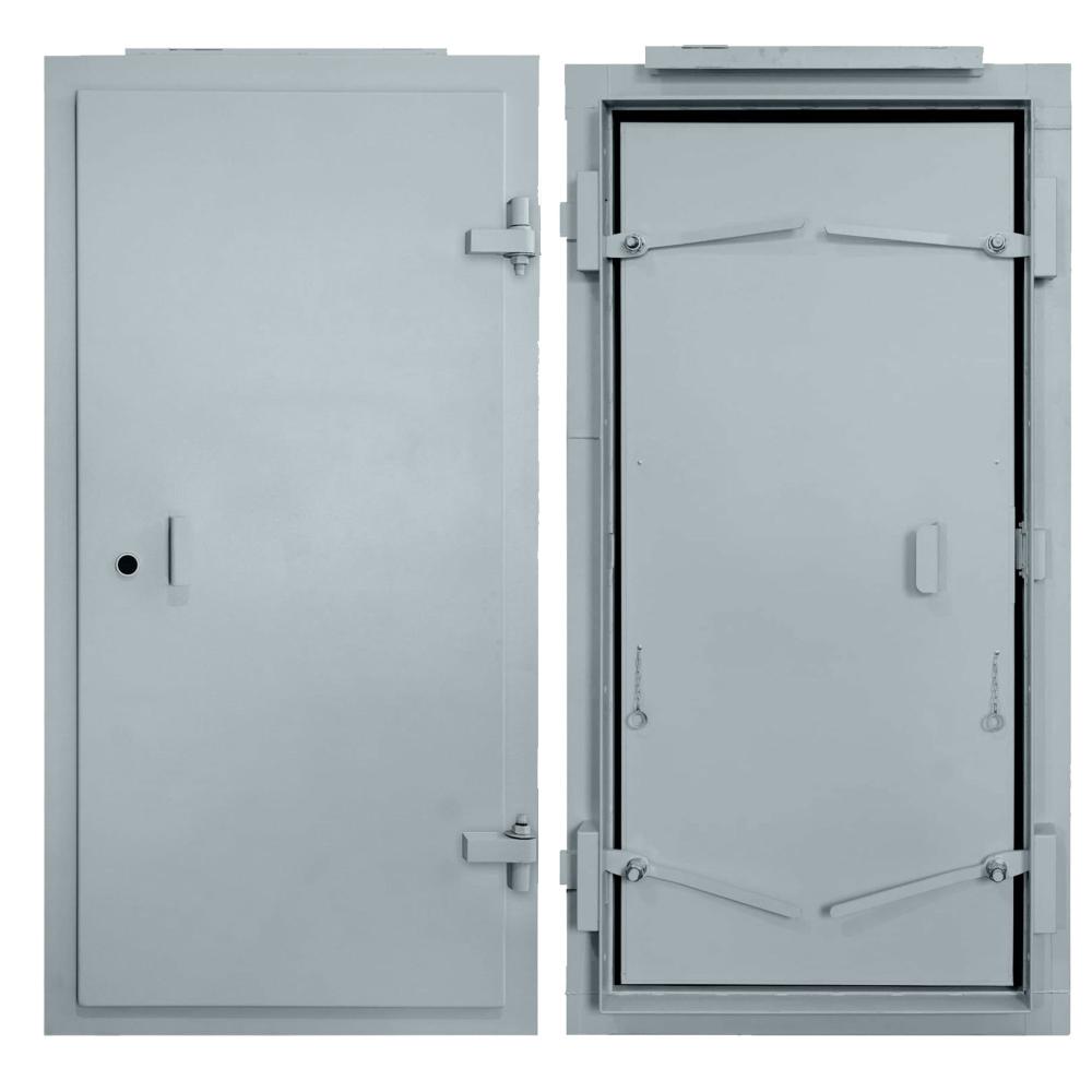 Двері призначені для використання в укриттях, бункерах, сховищах та як аварійний вихід для технічних приміщень для захисту від вибухової хвилі та пожежі. Розрахункове навантаження від ударної хвилі для дверей - 440кПа.
